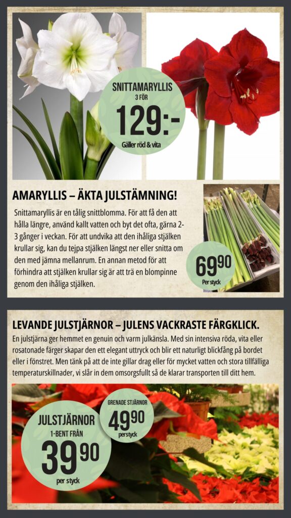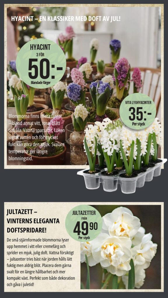 Hos oss hittar du kunnig och hjälpsam personal. Att odla och sälja växter kräver kunskap och erfarenhet – den finns hos oss. Vi har stort utbud på växter, inredning och annat smått o gott.