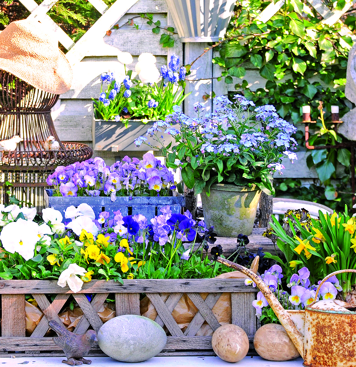 Plantera några pigga penséer, kanske i sällskap med olika sorters narcisser. Variera gärna storleken på krukorna för att skapa lite variation. Penséer och narcisser tål en hel del kyla, men vårens nattfrost kan ändå bli tuff. Lägg därför gärna dubbla lager fiberduk över dina blommor om temperaturen sjunker – det lilla extra skyddet kan göra stor skillnad.